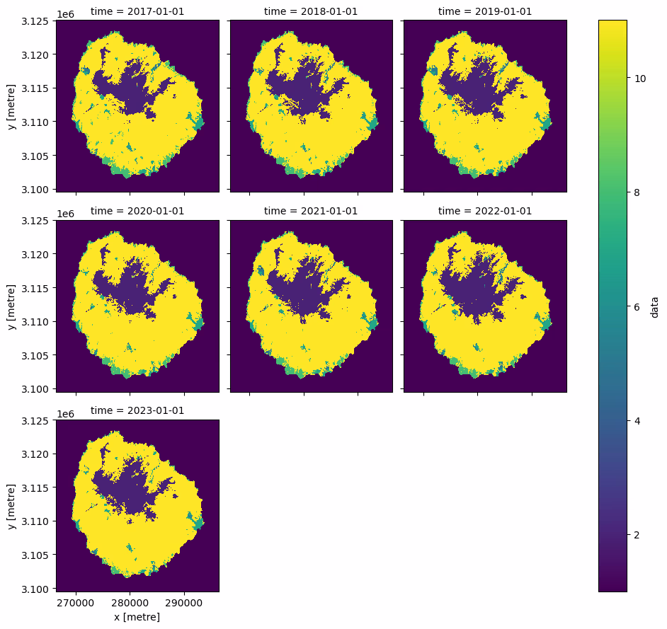 To produce a more descriptive plot, and understand the data, we recommend reviewing the io-lulc-annual-v02 example notebook that Microsoft Planetary Computer provide for this dataset.